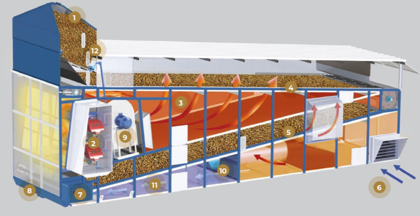 Не нужно загружать всю сушилку, для начала процесса, так как сушка начинается сразу. Благодаря этому нет потерь времени при загрузке сушилки, а так же можно за 15 минут произвести смену культуры.