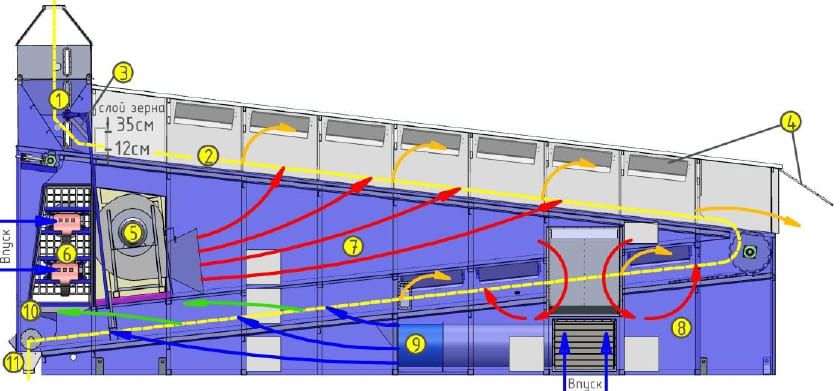 2. Отсутствие заторов и горячих точек, за счет продвижения зерна на конвейере